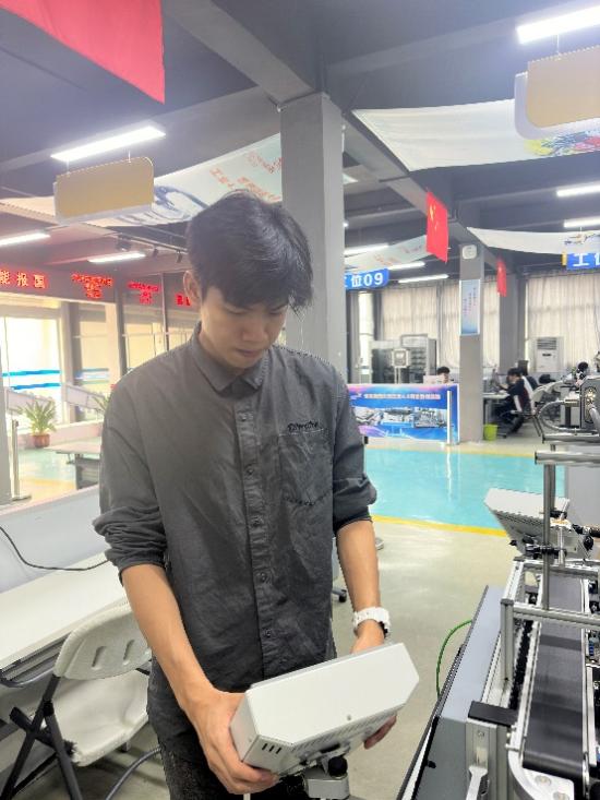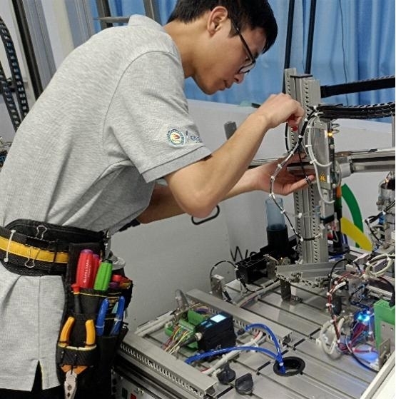 李泽和袁伟华都是学院的青年教师。李泽说:“世界技能大赛被誉为技能界的奥运会,在世赛上获奖将是如同奥运会获奖选手一般的荣耀,当我想到自己若是能作为中国代表参赛得奖,这将是多么令人兴奋的事情。” 袁伟华说:“走技能竞赛之路,给我提供了一个精进技能的平台,为了精益求精,永攀技术的高峰,这条路我会坚定地走下去。”尽管已经做好了心理准备,但当他们开始接触“工业4.0”项目的时候还是经历了重重困难,比如用到的软件多达十几款,还有很多没接触过的技术如AR技术、MES制造执行系统等,但他们从未气馁,而是潜心钻研技术,最终一路过关斩将站上了第二届技能大赛铜牌的领奖台,后续更是在国家集训队的最终考核中拿到了第三名的成绩。但他们的目标不止于此,将会继续努力向世界技能大赛的领奖台发起冲刺,不忘站在世界之巅的初心。他们每天制定详细的训练计划,主动地去寻找问题,认真地解决问题,制作出一套完整的比赛动作流程,这是他们总结的制胜法宝。他们表示:“耐心和毅力是取得进步的关键,即使遇到挫折也要坚持不懈地前行。”