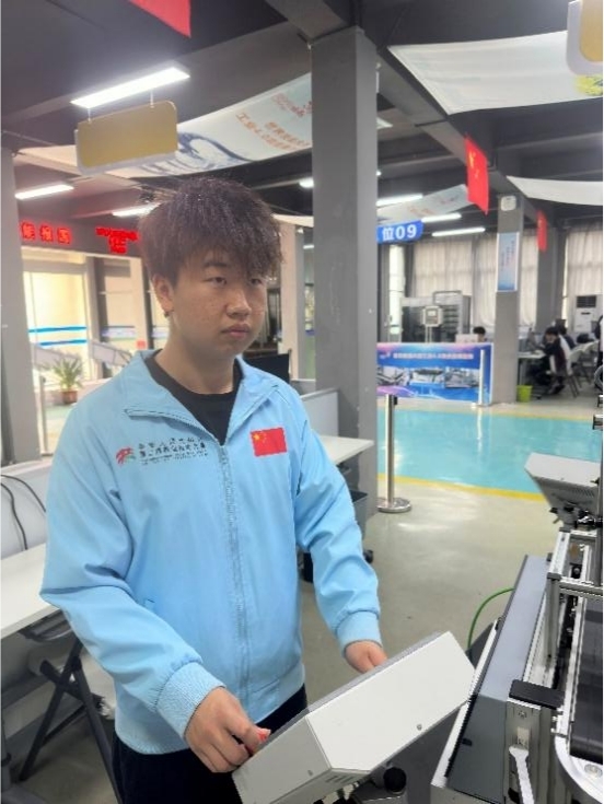 钟文彬(19岁),中华人民共和国第二届职业技能大赛“数控车(世赛选拔)”项目铜牌,广东省机械技师学院学生。